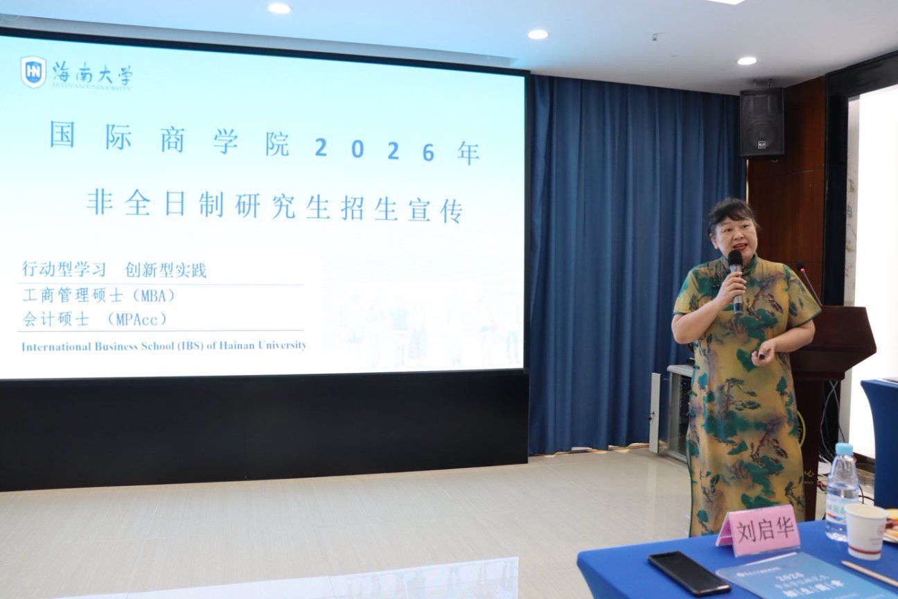 2025年9月7日下午,海南大学国际商学院2026年工商管理硕士(MBA)与会计专业硕士(MPAcc)海口招生推介会在海南大学国际学术交流中心顺利举行。活动旨在介绍MBA与MPAcc项目的发展背景、师资力量、课程设置及培养特色,深入解读自贸港建设的发展机遇。海南大学国际商学院副院长付景涛教授及教师代表出席活动。