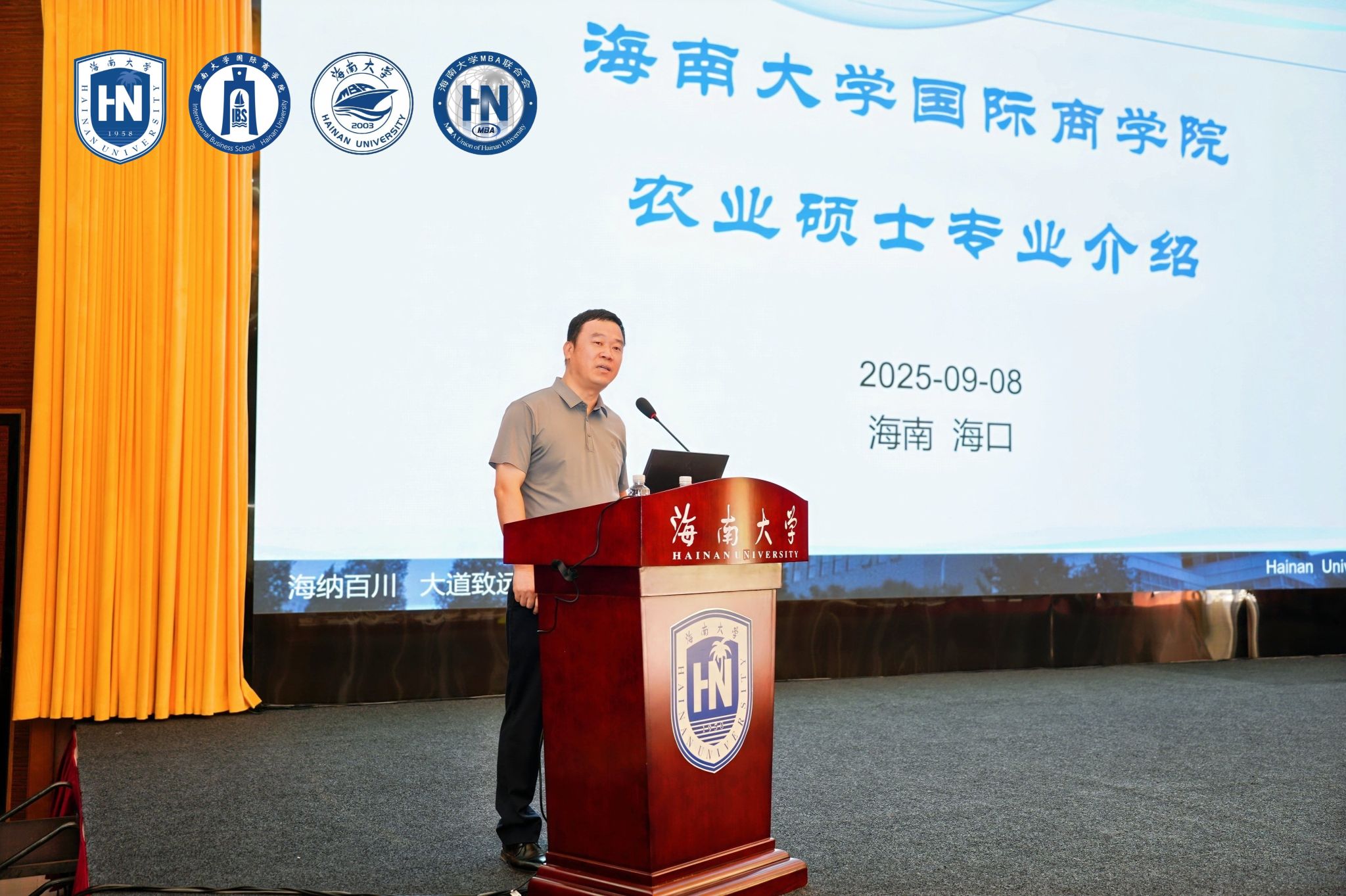 2025年9月7日上午,海南大学国际商学院2025级专业硕士研究生“开学第一课”在海甸校区社科楼报告厅顺利举行。活动旨在为新生开展入学教育,助力新生构建学科宏观认知,强化“扎根海南大地 服务自贸港”使命。海南大学国际商学院副院长付景涛教授、专业硕士各专业学术主任及教务秘书出席活动。