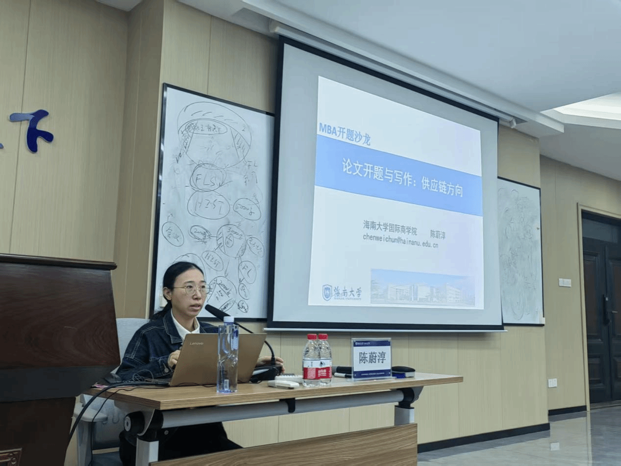 11月29日,海南大学国际商学院MBA(专业学位研究生)教育中心在社科楼B623讲堂顺利举办2025-2026学年第五期学位论文开题沙龙——供应链管理专题,此次讲座由海南大学国际商学院熊浩教授与陈蔚淳讲师主讲。